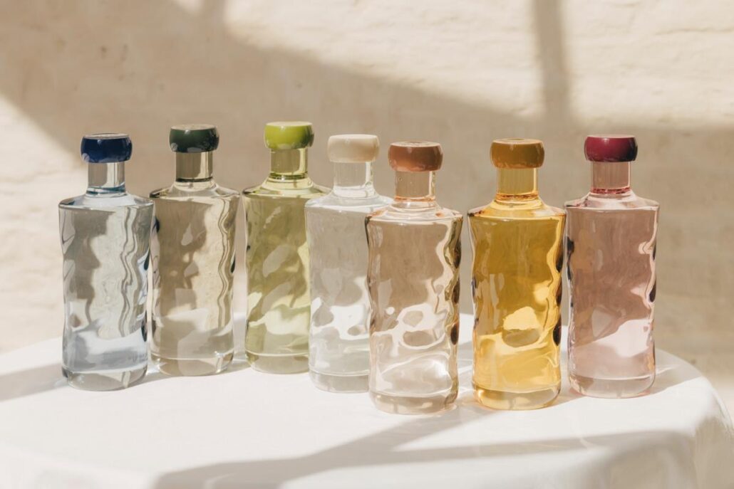 Elke fles is verkrijgbaar in één van de zeven kleuren en voorzien van een nieuw zelfontworpen, gekleurd ton-sur-tondop in hoogglans afwerking. De flessen zijn gemaakt van hoogwaardig borosilicaatglas, sterk, herbruikbaar en toch verfijnd in uitstraling en gevoel.