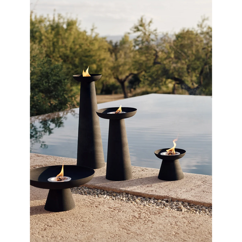 The Meira Oil Lantern in powder-coated steel illuminates outdoor spaces as the sun sets. Designed with a refillable oil chamber, the ambient design emits a large, wide flame from its centre. The lanterns include a removable plastic cap to prevent water entering the chamber when not in use. Available in different sizes with a rust-resistant finish.